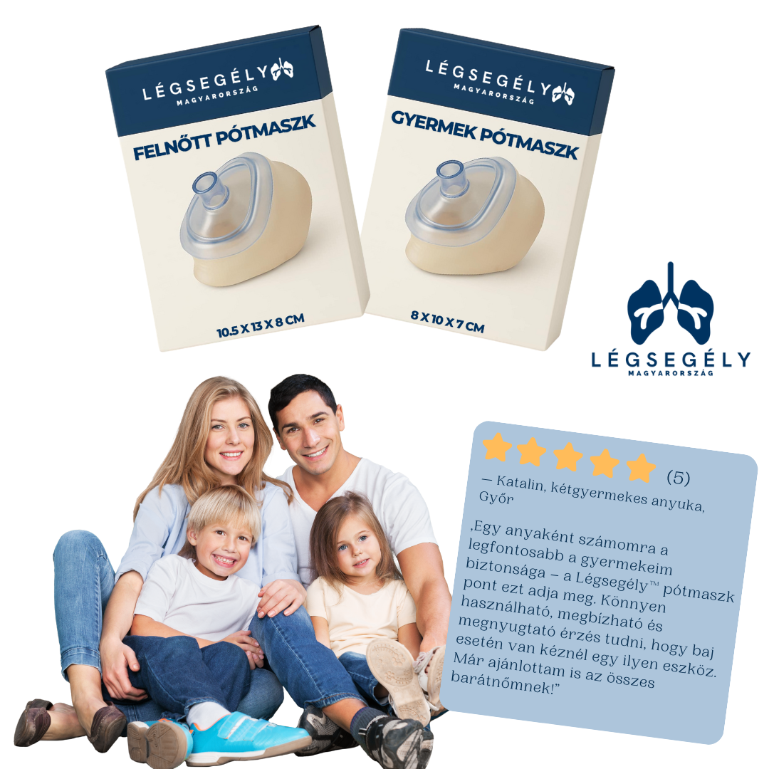Figyelem! Ez a termék csak pótmaszkként szolgál. Minden Légsegély™ készülék már tartalmaz egy felnőtt és egy gyermek méretű maszkot is.